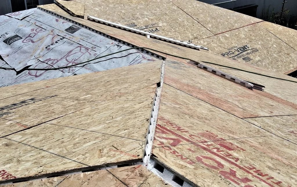 Not only do our panels deliver exceptional energy savings, but it also exceeds the requirements for High-Performance Attics, ensuring your home stays cooler, more efficient, and more comfortable year-round. The insulation core is securely bonded to OSB (Oriented Strand Board), providing both thermal efficiency and moisture control in one robust solution. Key Features • Integrated Ventilation Layer: • Built-in vent channels beneath the roof deck enable continuous airflow, helping to prevent condensation.